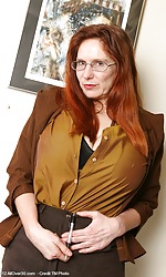 Redheaded MILF Breeze from AllOver30 massages her bushy beaver